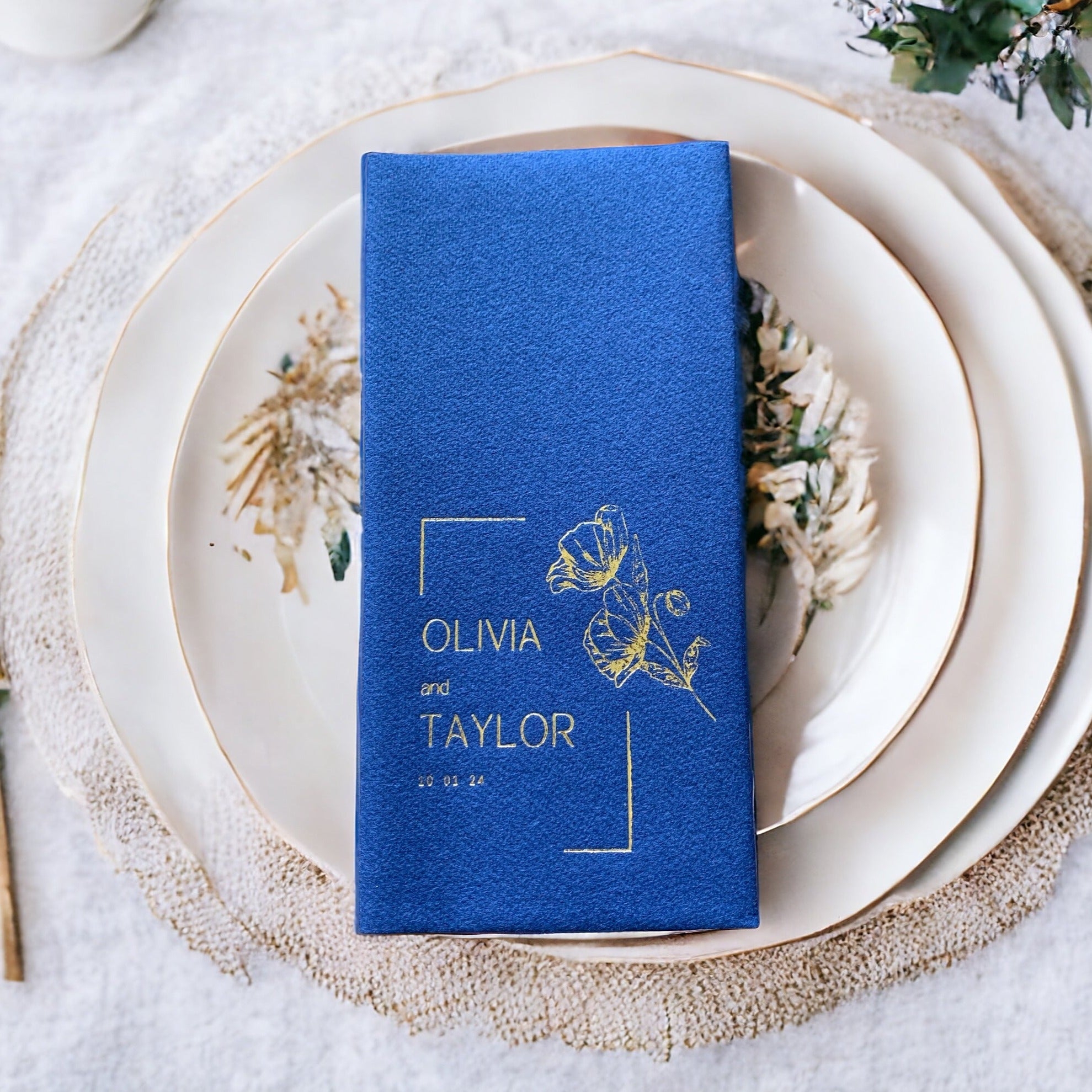 Personalized Wedding Napkins with Branch, Linen Like
