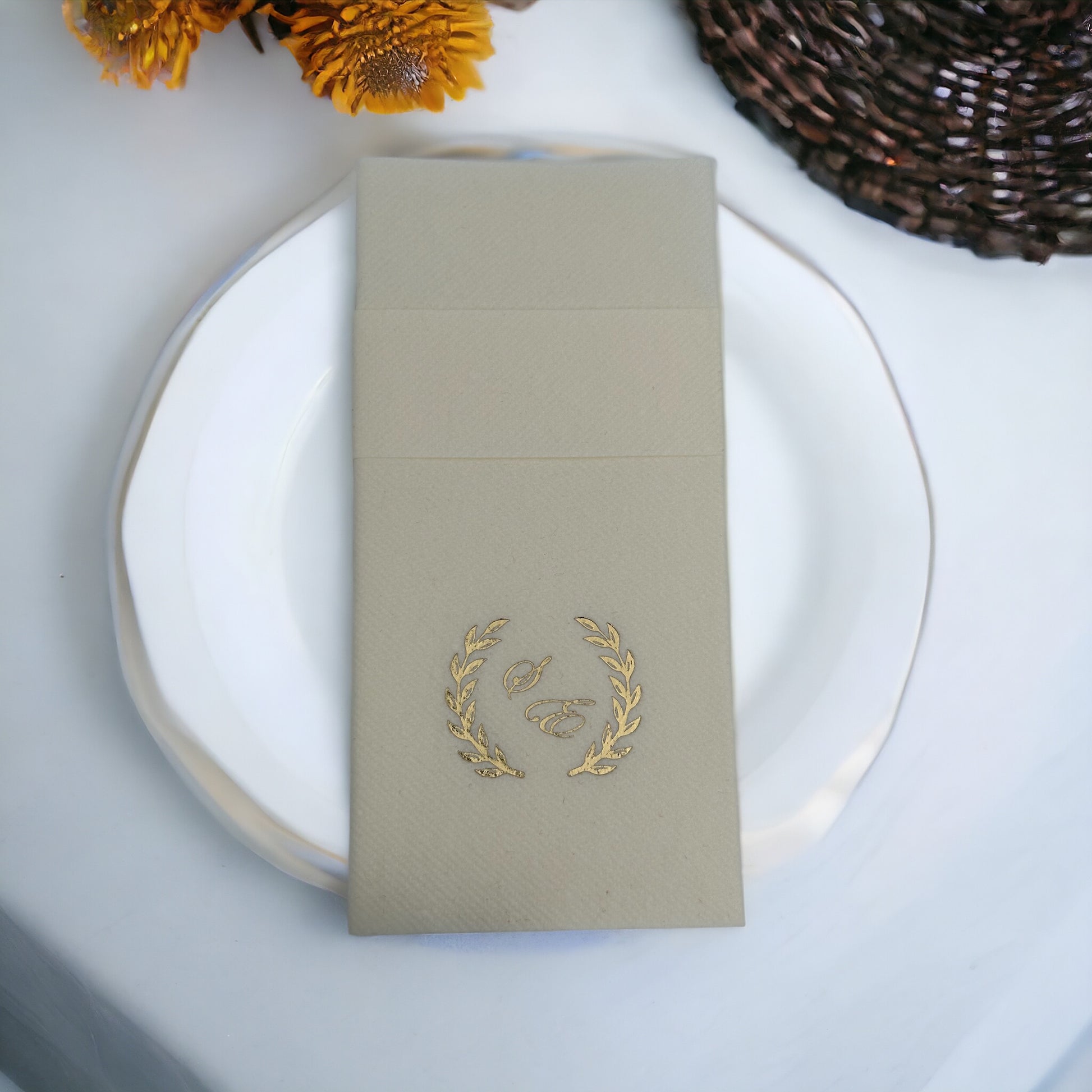 Personalized Wedding Pocket Napkins, with Letters and Branch